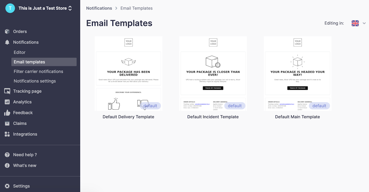Incident: Sent when an unexpected event occurs (issue with address, shipping delay, etc.).