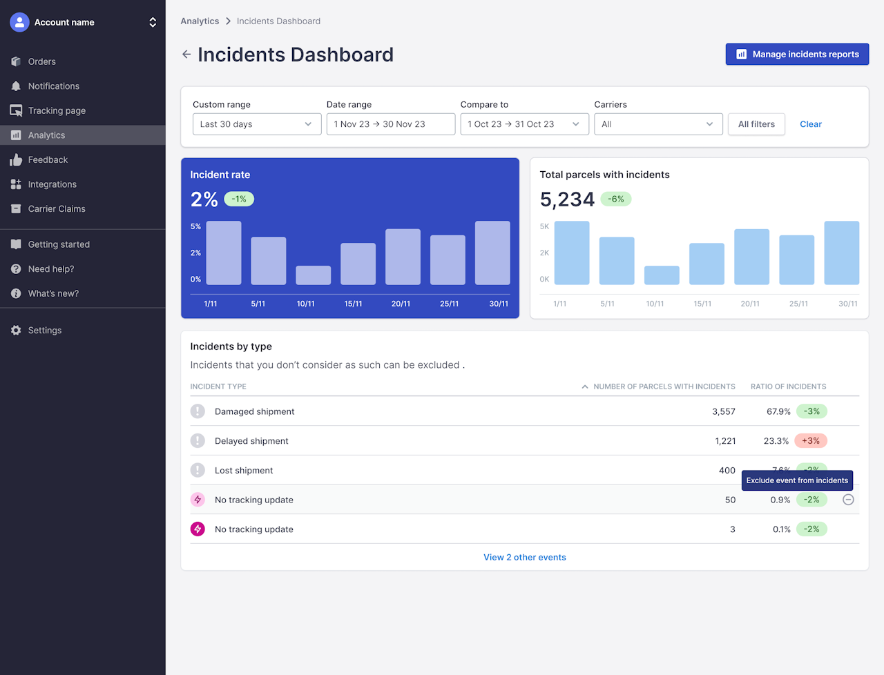 Display trends in incident rates and the total number of parcels with incidents through graphs. A real goldmine for your statistics!