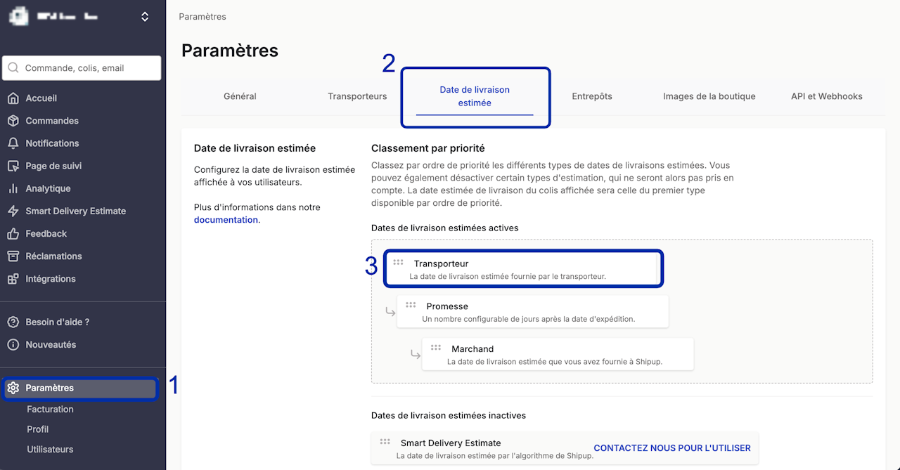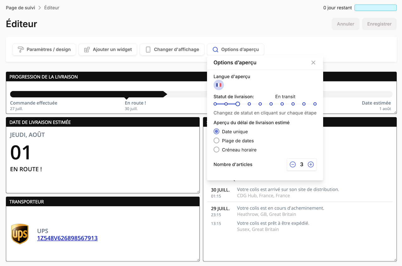 Afin d’améliorer la qualité des informations dans la page de suivi communiquée à vos clients, vous pouvez dorénavant choisir d'afficher le créneau de livraison dans :