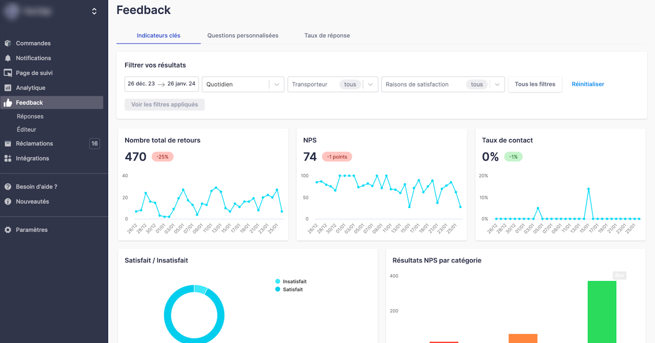 Feedback : 13 : Vous avez reçu 13 retours clients sur la période du 19 décembre 2020 au 19 janvier 2021
