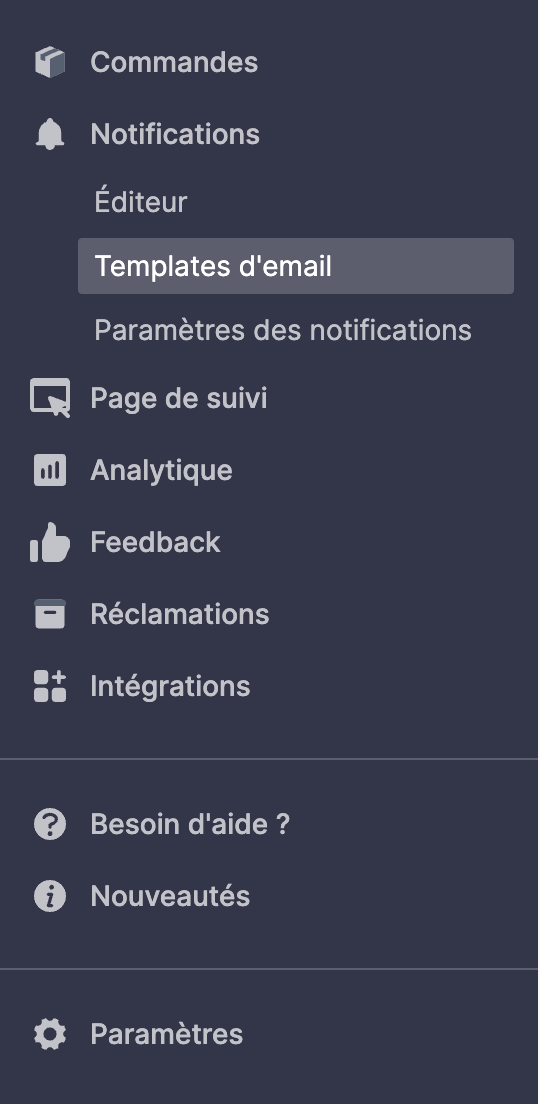 Notifications > Templates d'email > Éditer