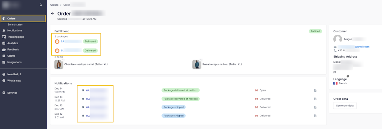 • La commande n'est pas complète à l'instant T. La première partie est expédiée maintenant et le reste sera expédié plus tard.